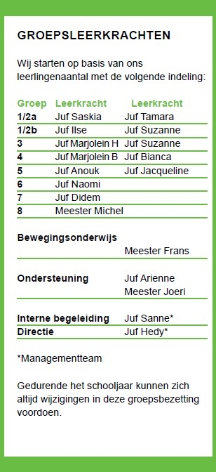 Welke leerkrachten voor welke groep?